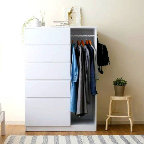 جالباسی + دراور ریل کشو ساچمه ای سه تیکه لبه های کار با نوار pvc پوشانده شده بدون دستگیره پشت کار فیبر 3 میلی متری و به رنگ سفید است.