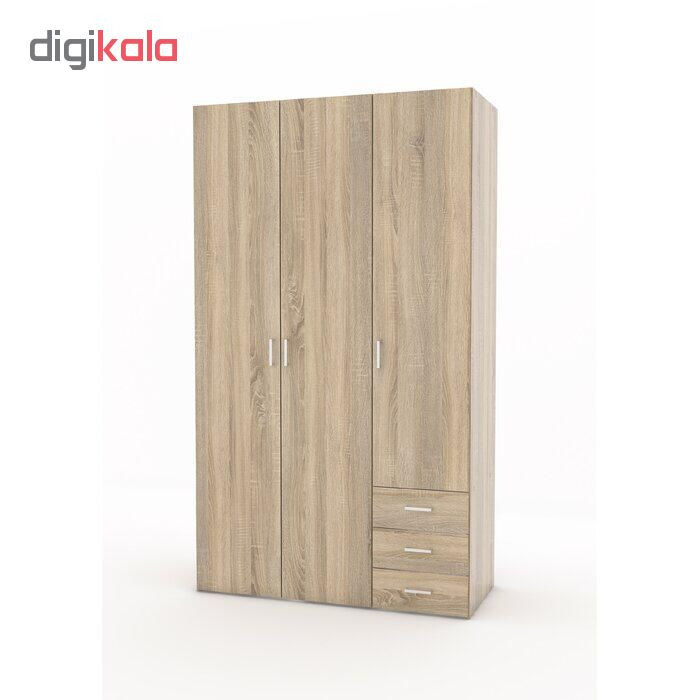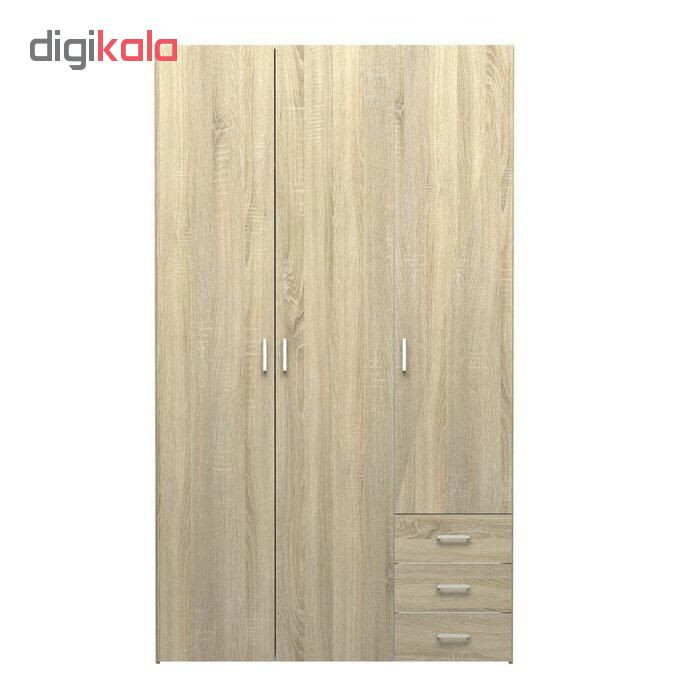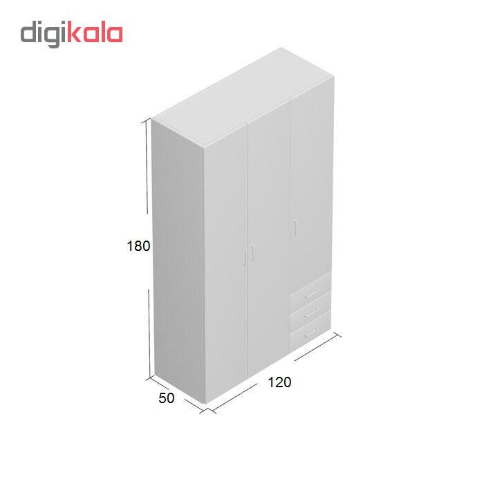کمد لباسی که در تصویر مشاهده میکنید شامل سه عدد کشو و سه عدد کابین لباس است که هر کابین نیز به چندین محفظه و رگال تقسیم میشود. البته که محفظههای داخلی دارای چندین محفظه کوچکتر بوده و میتوان از هر کدام برای قرار گرفتن لباسها استفاده کرد. کشوهایی که در پایین سمت راست قرار دارد برای جای گیری لباسهای رایج مورد استفاده قرار میگیرد. در بالای کشوها چندین محفظه کوچک به صورت طبقهای وجود دارد که میتوان برای چیدن ابزار دکوری یا شخصی از آن استفاده کرد. در وسط کمد لباس مدل FH128 رگالی قرار دارد که میتوان گفت برای آویزان شدن لباسهای رسمی، نیمه رسمی و بلند یا کوتاه کاربرد دارد. البته که در بالای کمد لباس مدل FH128 نیز یک کمد قرار دارد که از آن میتوان برای قرارگیری باکس یا کفش استفاده کرد.